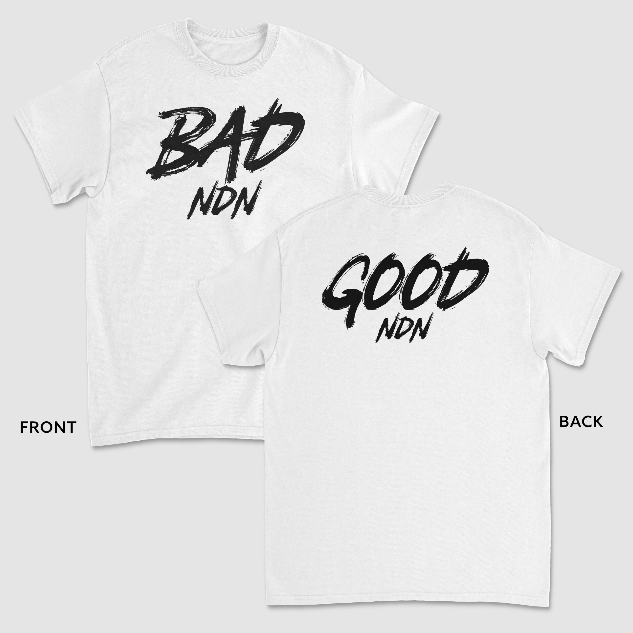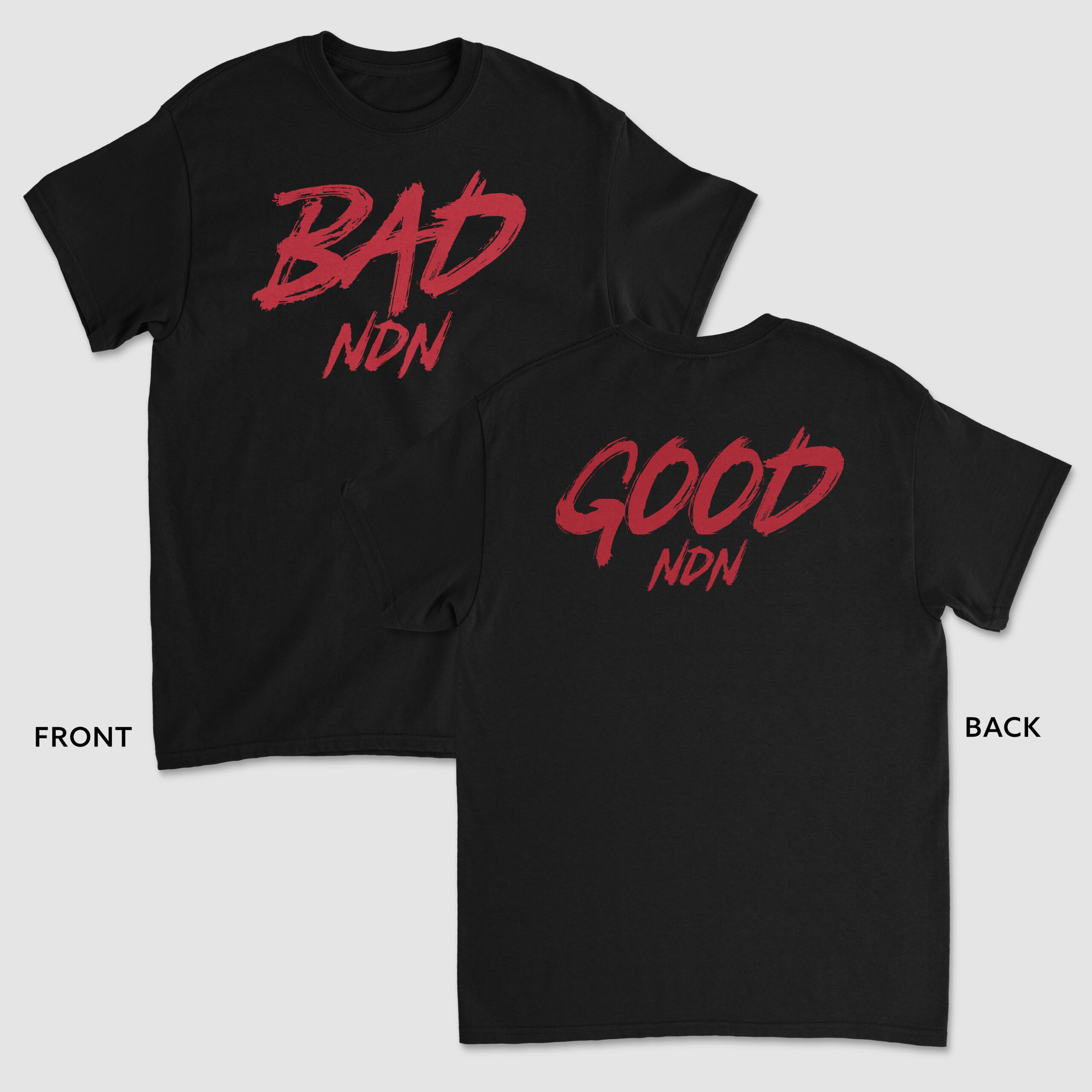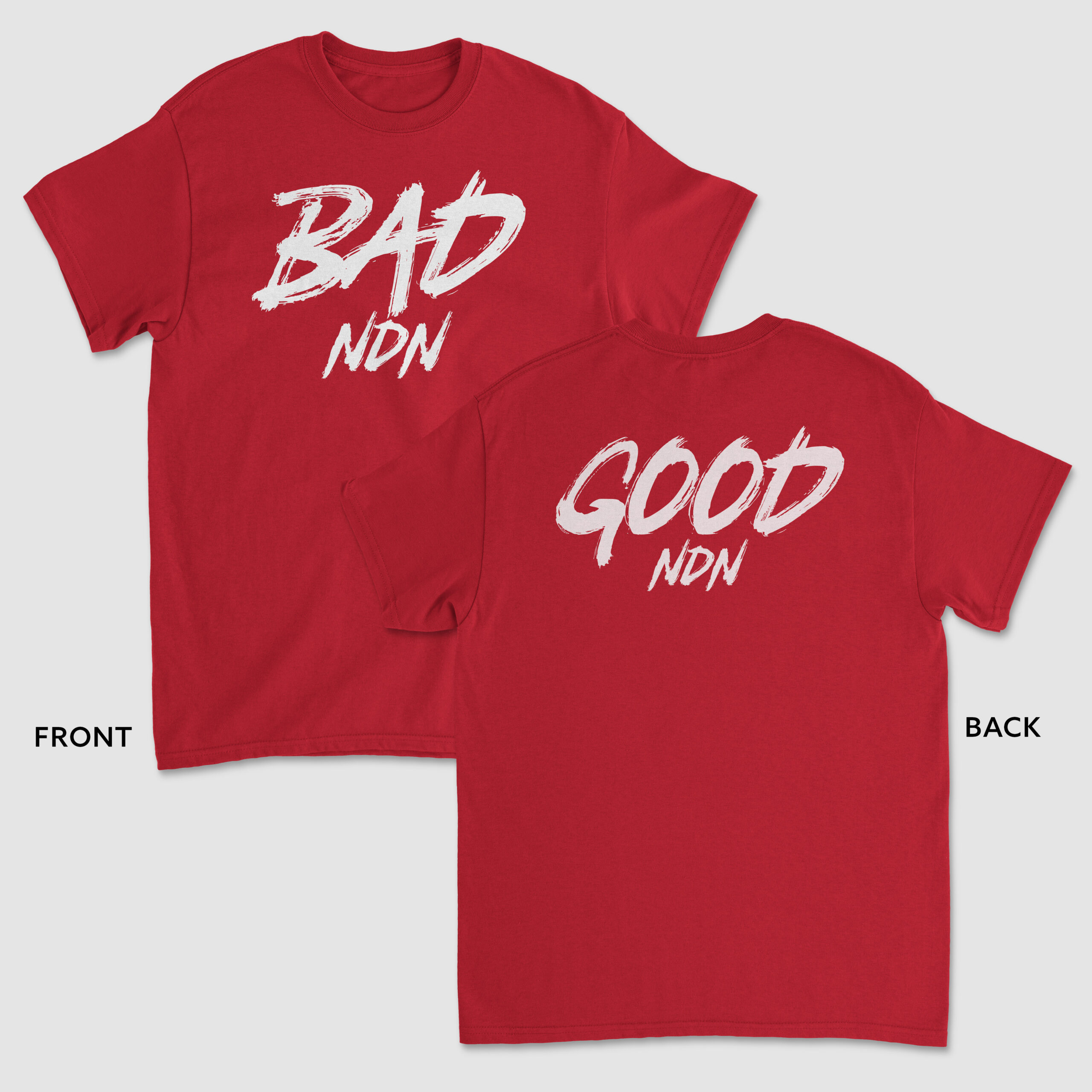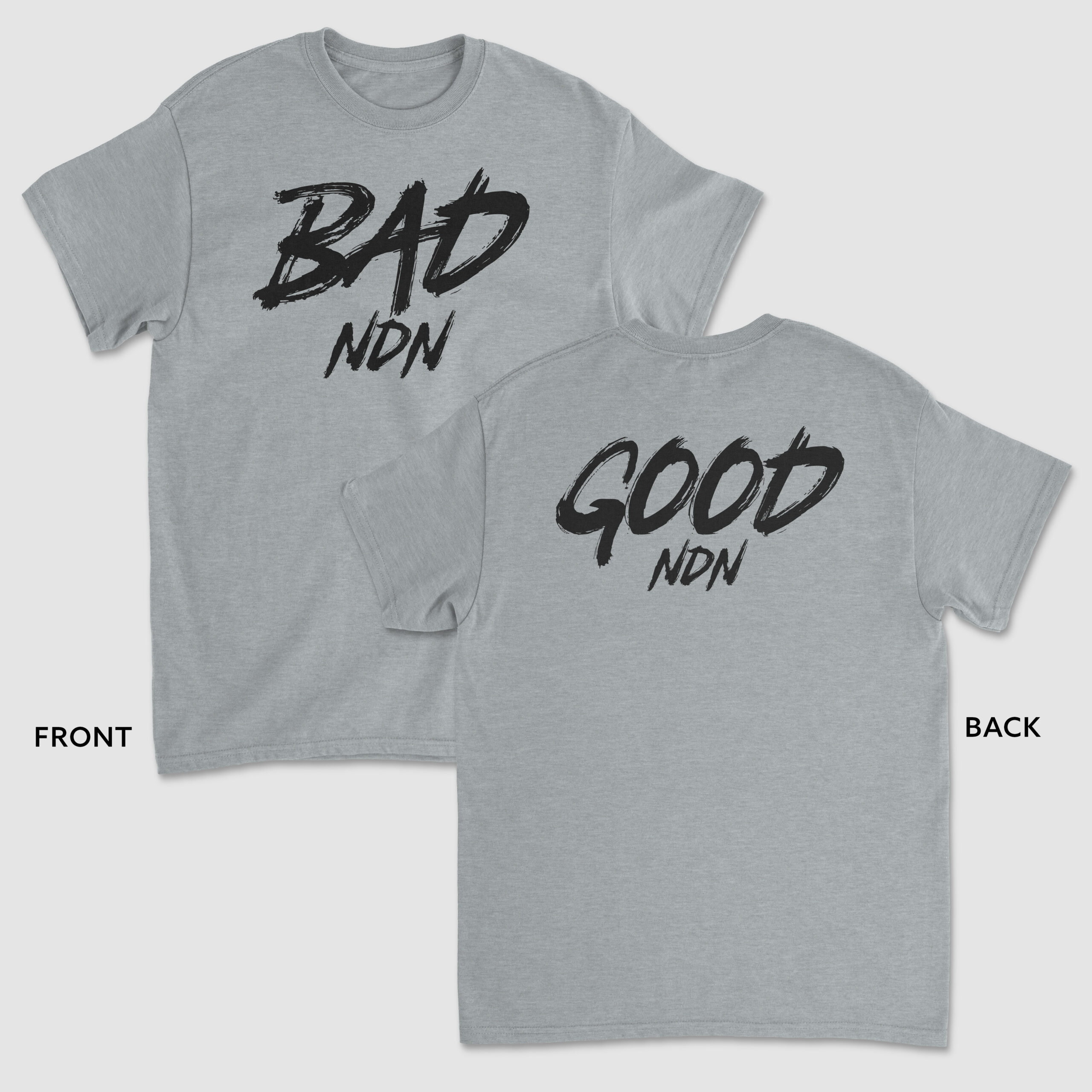 Our BAD NDN – GOOD NDNĀ Tee is a relaxed fit in heavy weight 6.5 oz 100% combed cotton